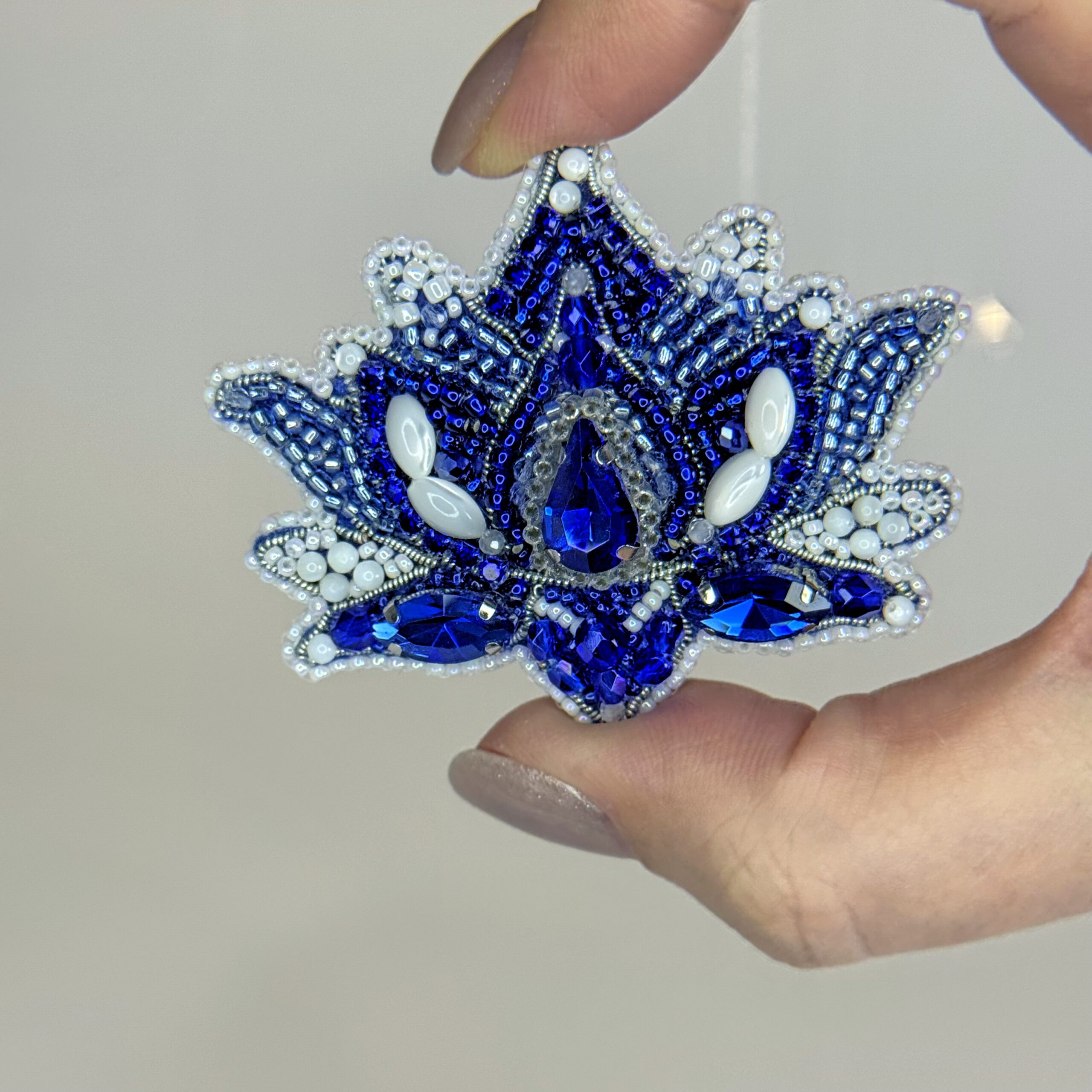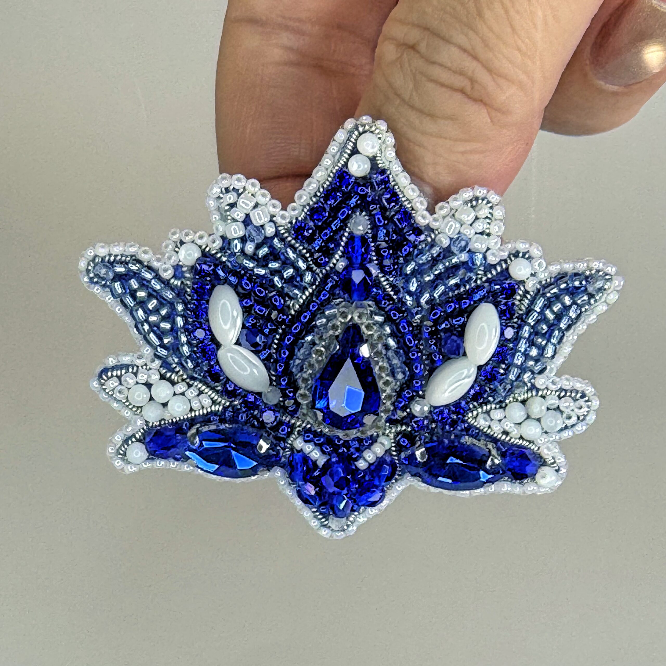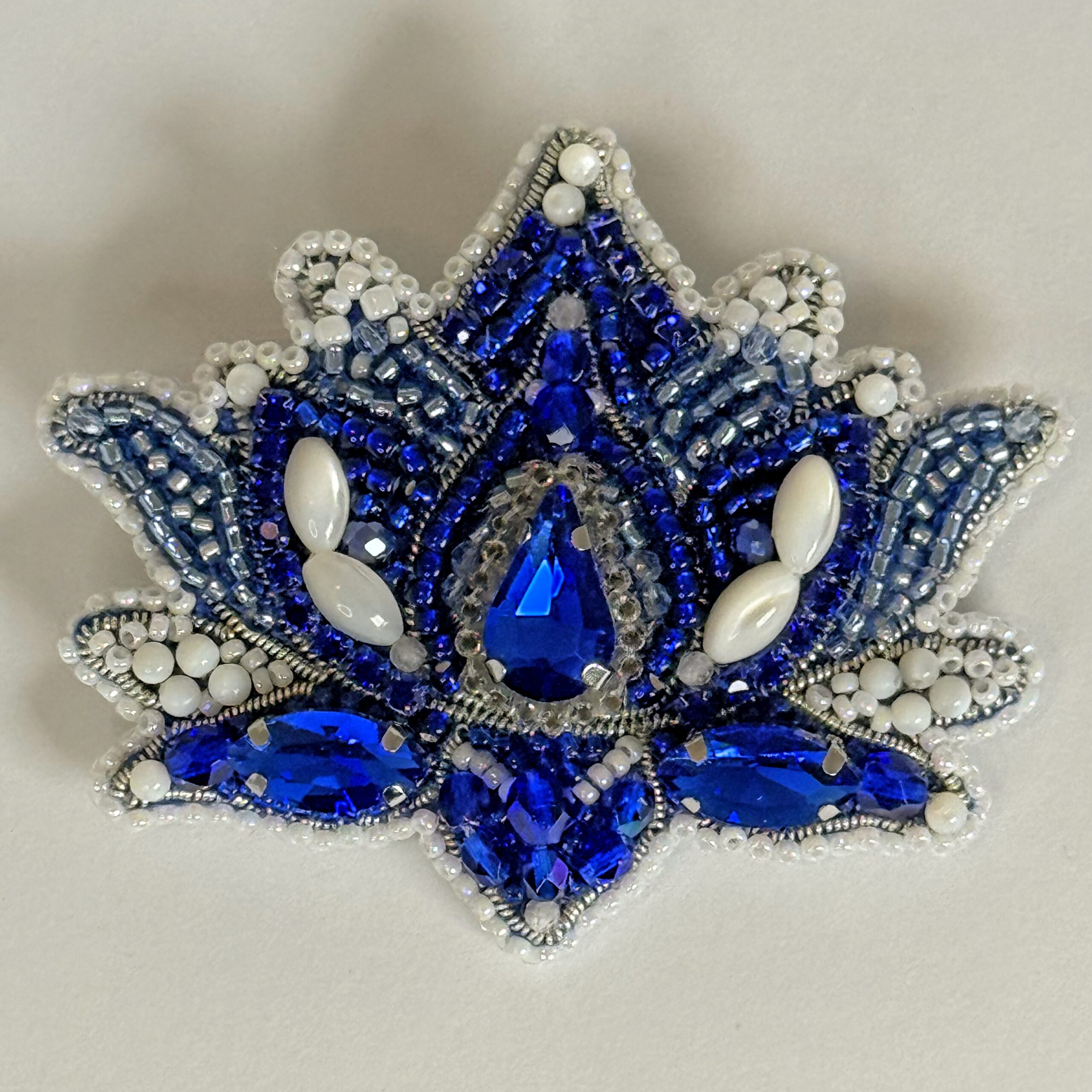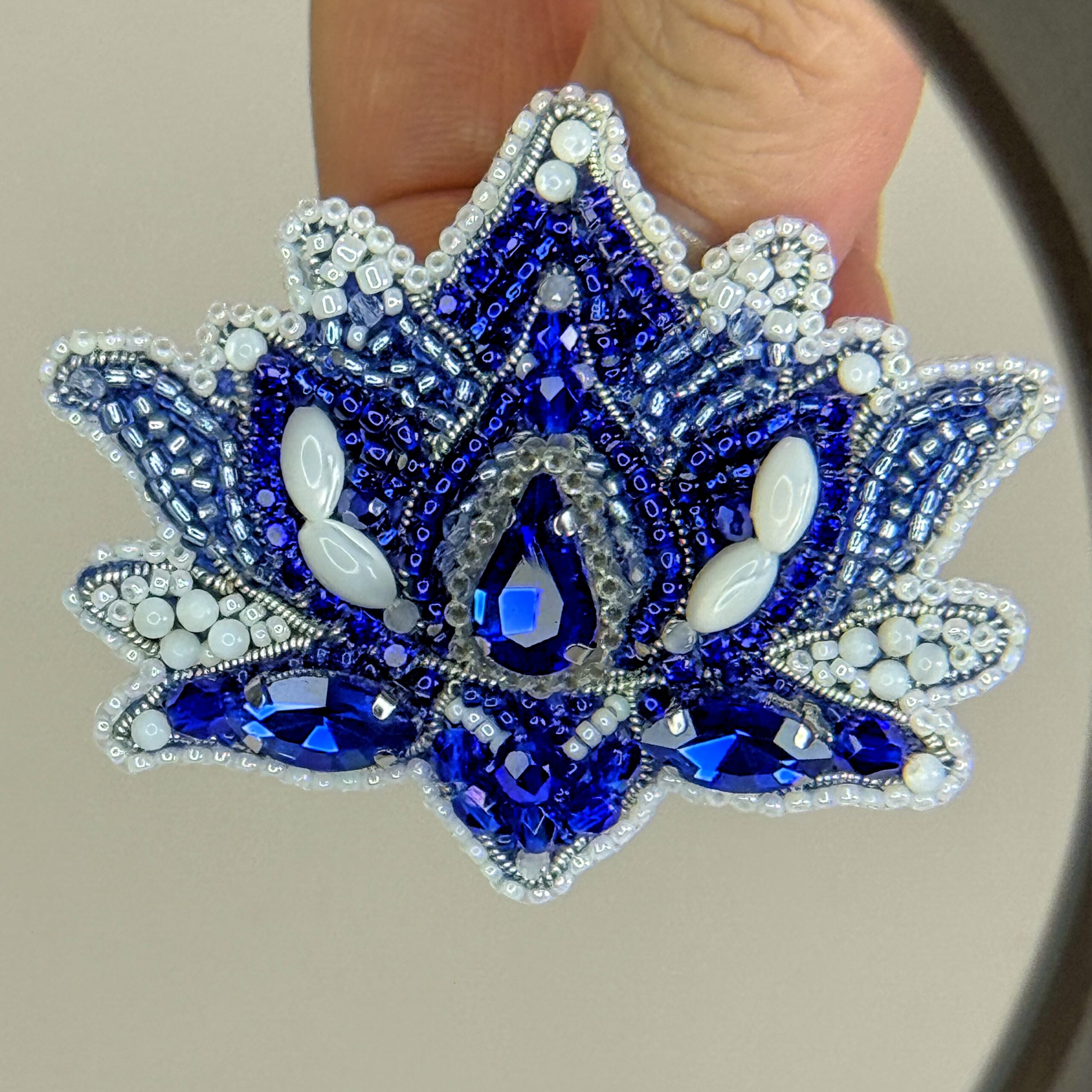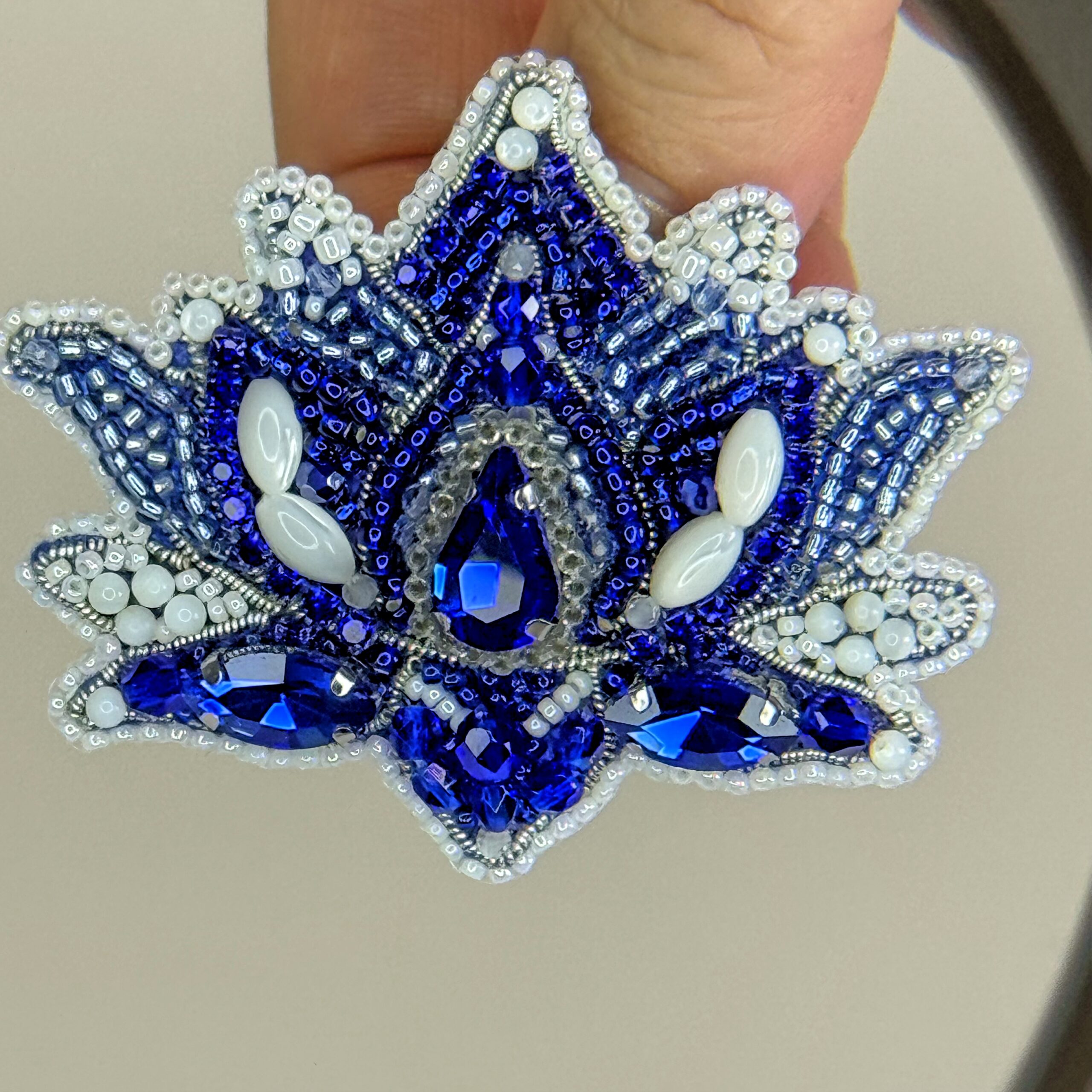 Blue Lotus Brooch, Handcrafted Beaded Flower Pin, Unique Floral Jewelry for Women, Gift for Her, Gift for Mom, Lotus Blossom Badge.