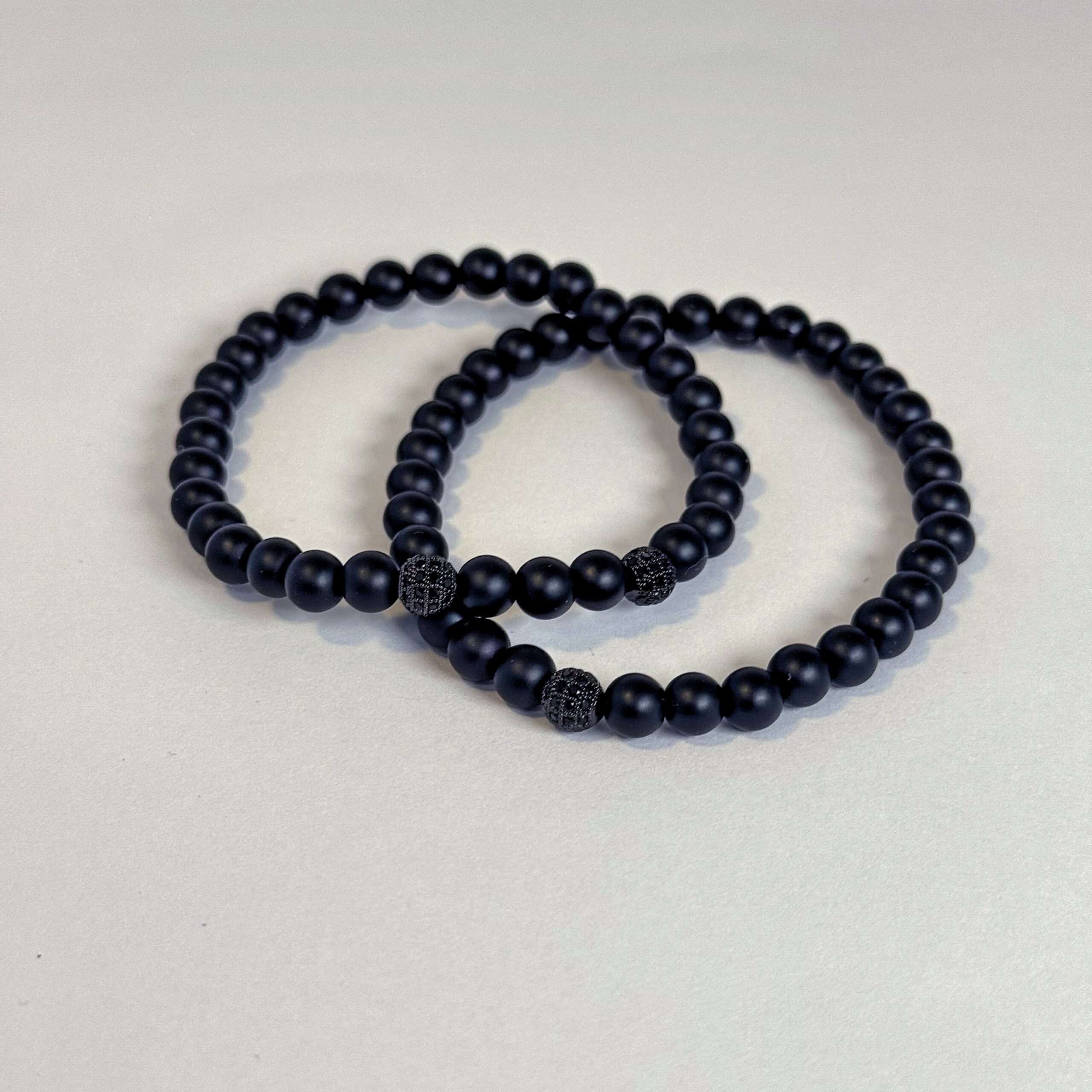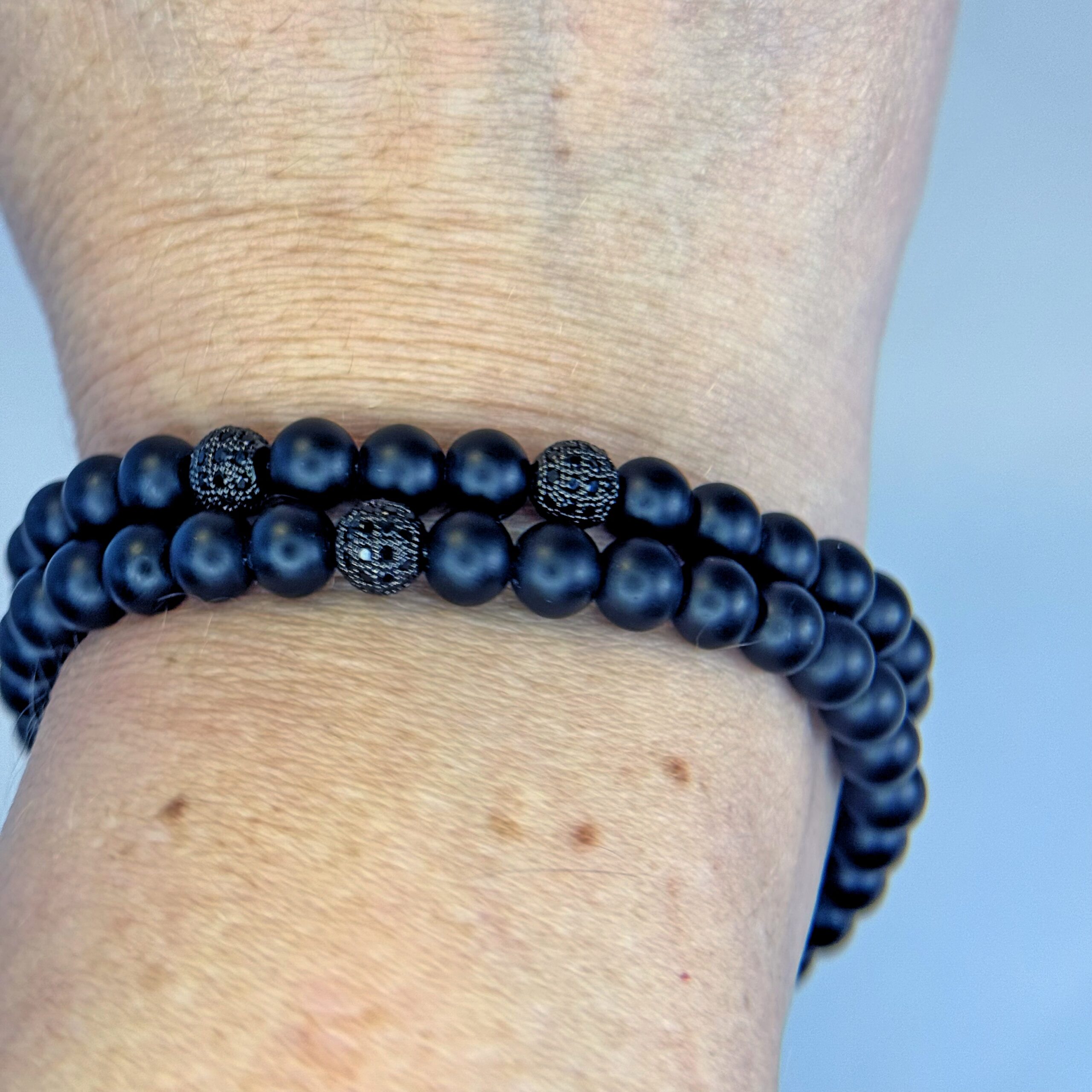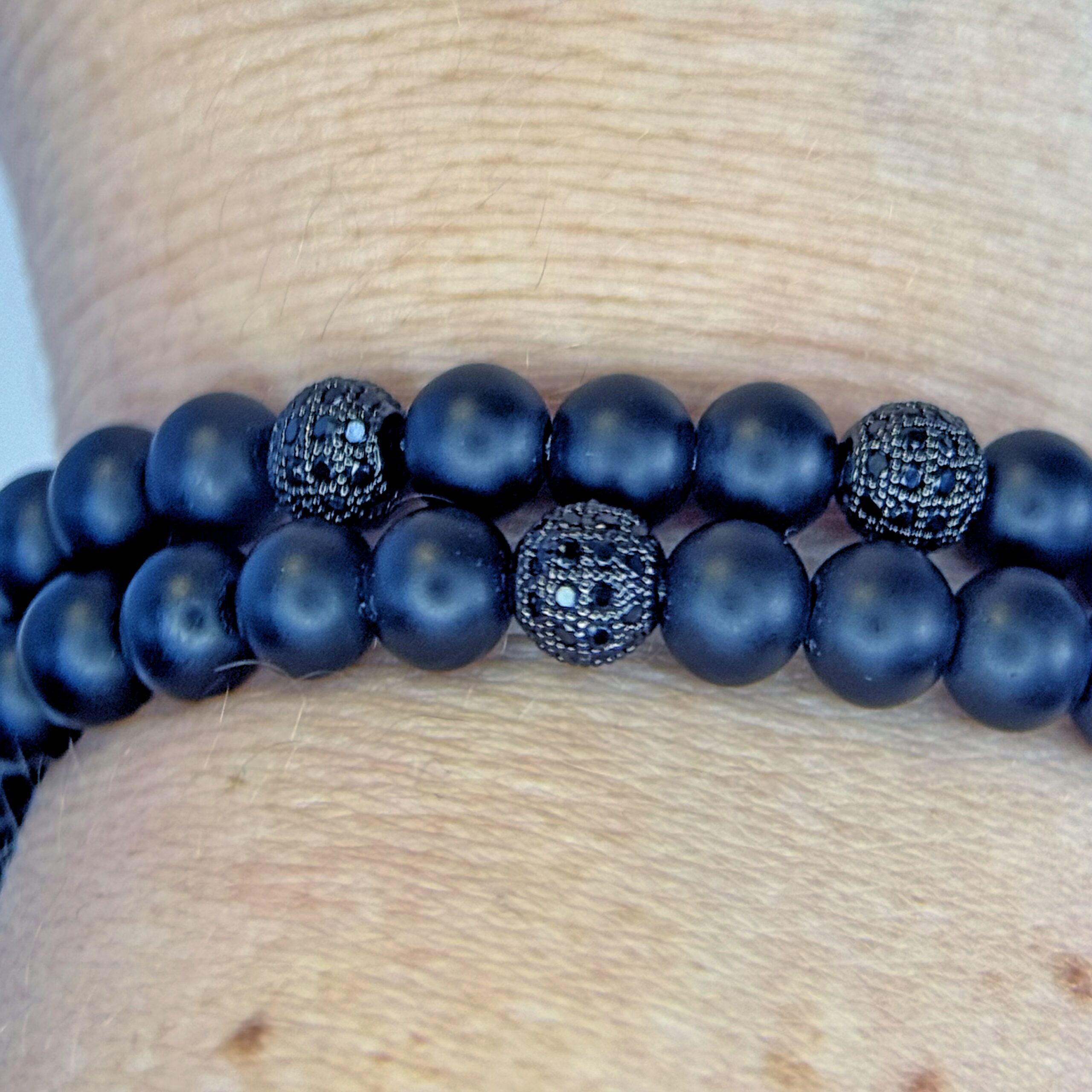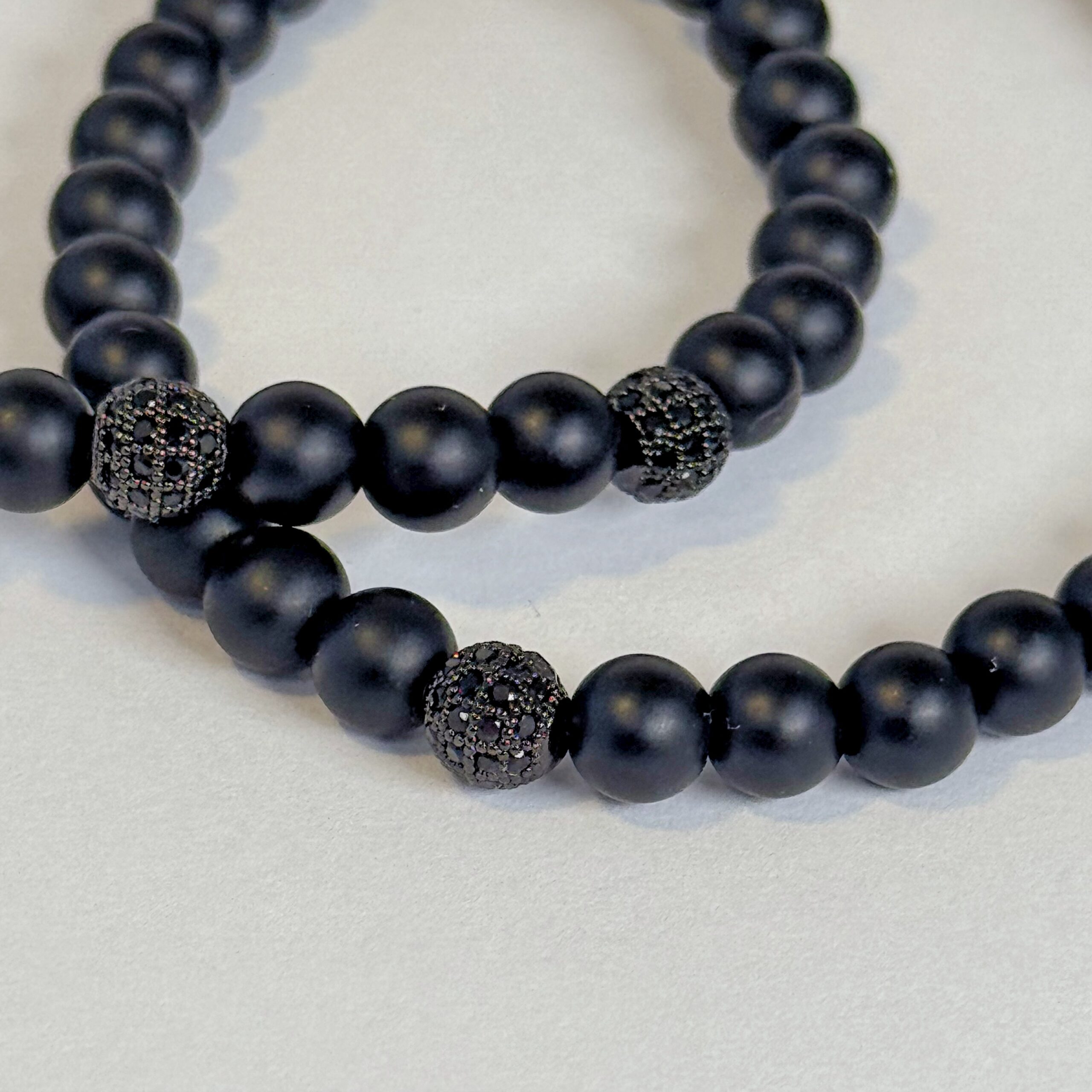 Оникс?; 1 Бусина 6 мм черная круглая с цирконами; резинка; размер камня 6 мм